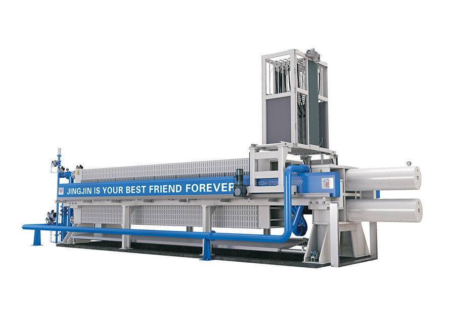 节能高效滤榨机能够实现滤板压紧、过滤、压榨、反吹、洗涤、滤板松开、卸料等各道工序的自动化控制;该机型配置了隔膜板,过滤后通过水压或气压改变滤室容积,对滤饼进行压榨,进一步降低滤饼含水率。滤板为增强聚丙烯模压而成,隔膜板为增强聚丙烯模压热合而成,具有国际领先水平。同时电气元件和液压元件均采用名牌厂家产品,使用寿命长,因此节能高效滤榨机是理想的过滤设备。