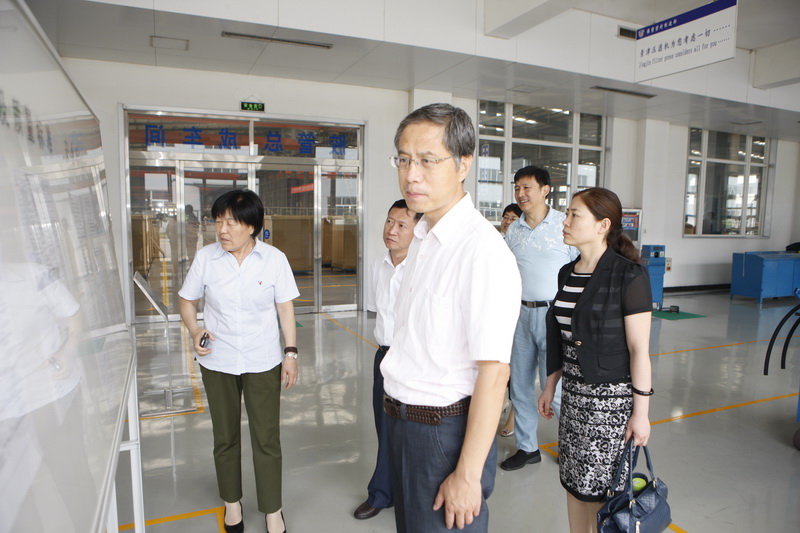 第九次全省厂务公开民主管理工作检查组来太阳成tyc33455ccwww视察,太阳成tyc33455ccwww集团工会主席高俊荣陪同参观。